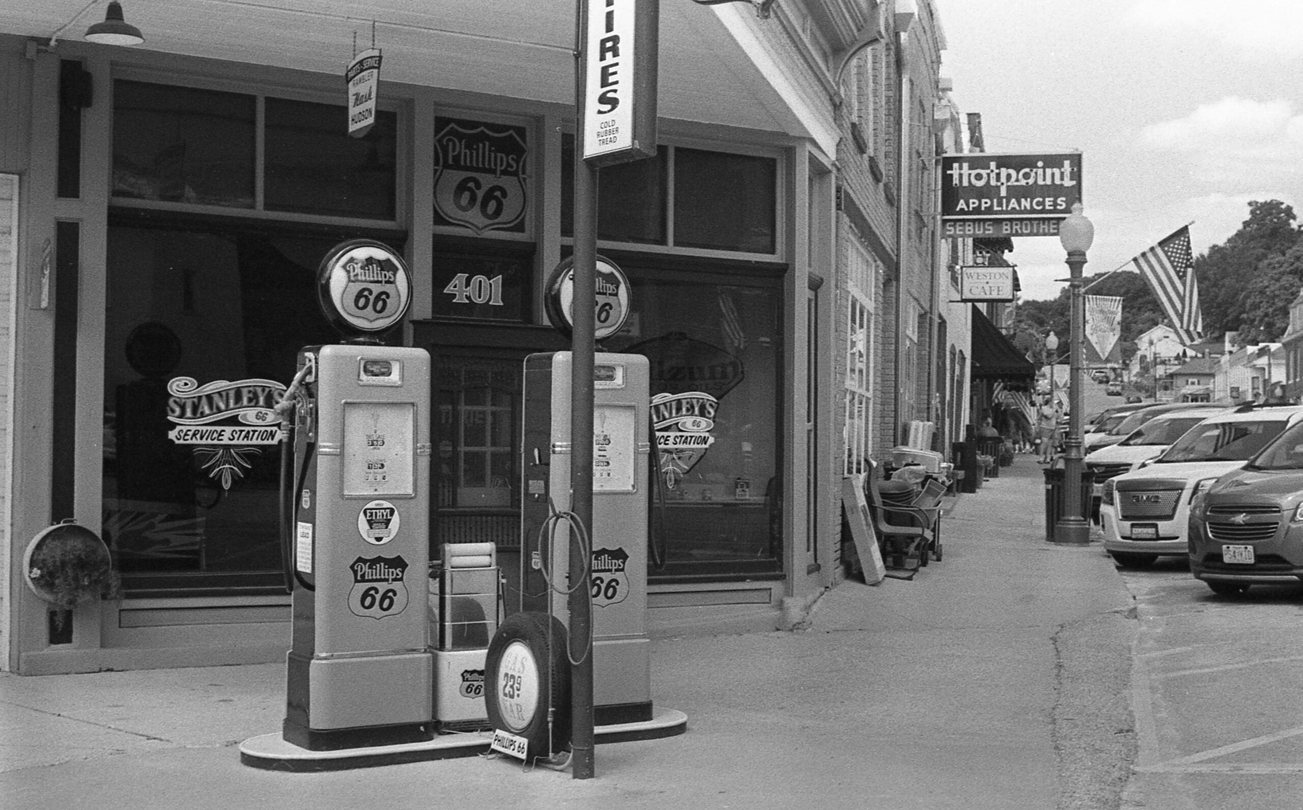 Then and now: A side by side comparison of a gas station in the 1950s compared to the modern day